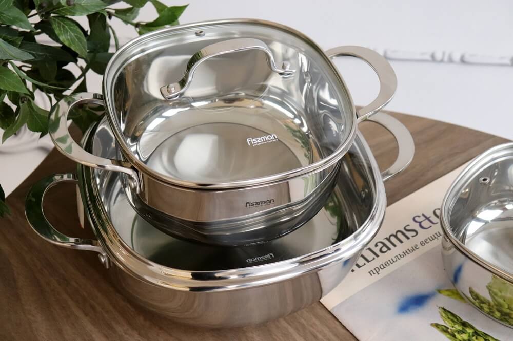 Когда бытовая кухонная утварь переходит в статус эстетики и надёжности — на сцену выходит EXCLUSIVE PRO от FISSMAN. Эта посуда — идеальный баланс компактности, ёмкости и премиального дизайна. Квадратные стенки с круглым дном — не просто эффект, а продуманный ход, который помогает теплу распределяться равномерно.