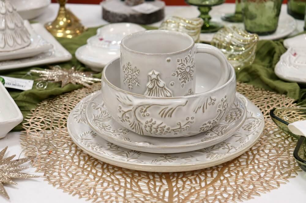 Изысканные сервизы, украшенные изображениями еловых веток, снежинок и забавных снеговиков, ждут вас. Они станут прекрасным украшением новогоднего стола и создадут атмосферу волшебства во время праздничного застолья. Разнообразные тарелки, чашки, блюда и салатники – все, чтобы сервировать блюда с особым шиком.