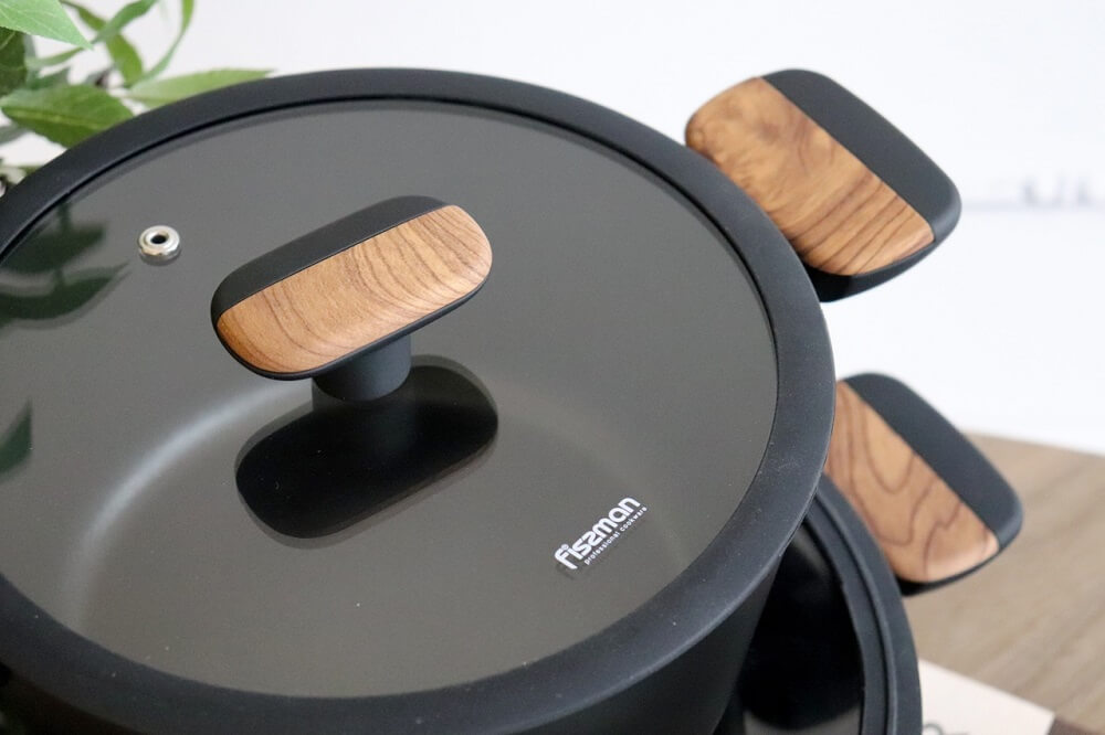 Широкий спектр выпускаемых товаров FISSMAN включает в себя многообразие цветовых гамм, форм и размеров. При покупке нужной модели кастрюли, можно подобрать вариант схожий по цвету с интерьером кухни или бытовой техники. Вся продукция изготавливается исключительно из высококачественных, экологически чистых и безопасных материалов, а дизайнеры FISSMAN создают уникальный узнаваемый стиль. Вся посуда оснащена стойким антипригарным слоем, которое позволяет предотвратить прилипание пищи к стенкам и дну посудины.