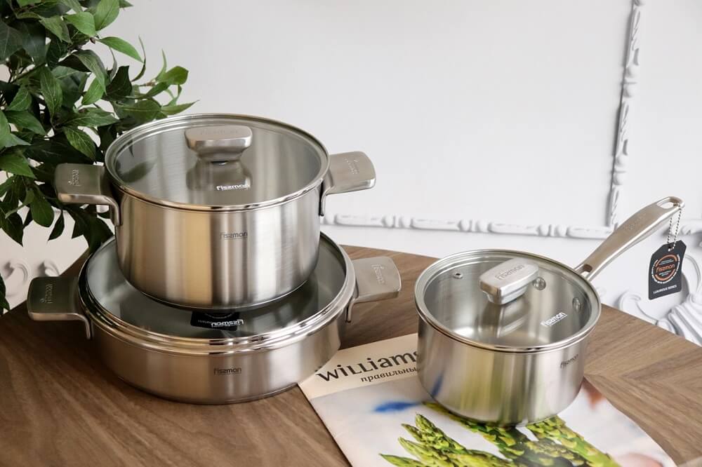 Линейка кастрюль датской компании FISSMAN включает: кастрюли из нержавеющей стали, кастрюли алюминиевые, кастрюли керамические, кастрюли стеклянные, кастрюли чугунные, пароварки, кастрюли для СВЧ, ковши, наборы кастрюль.